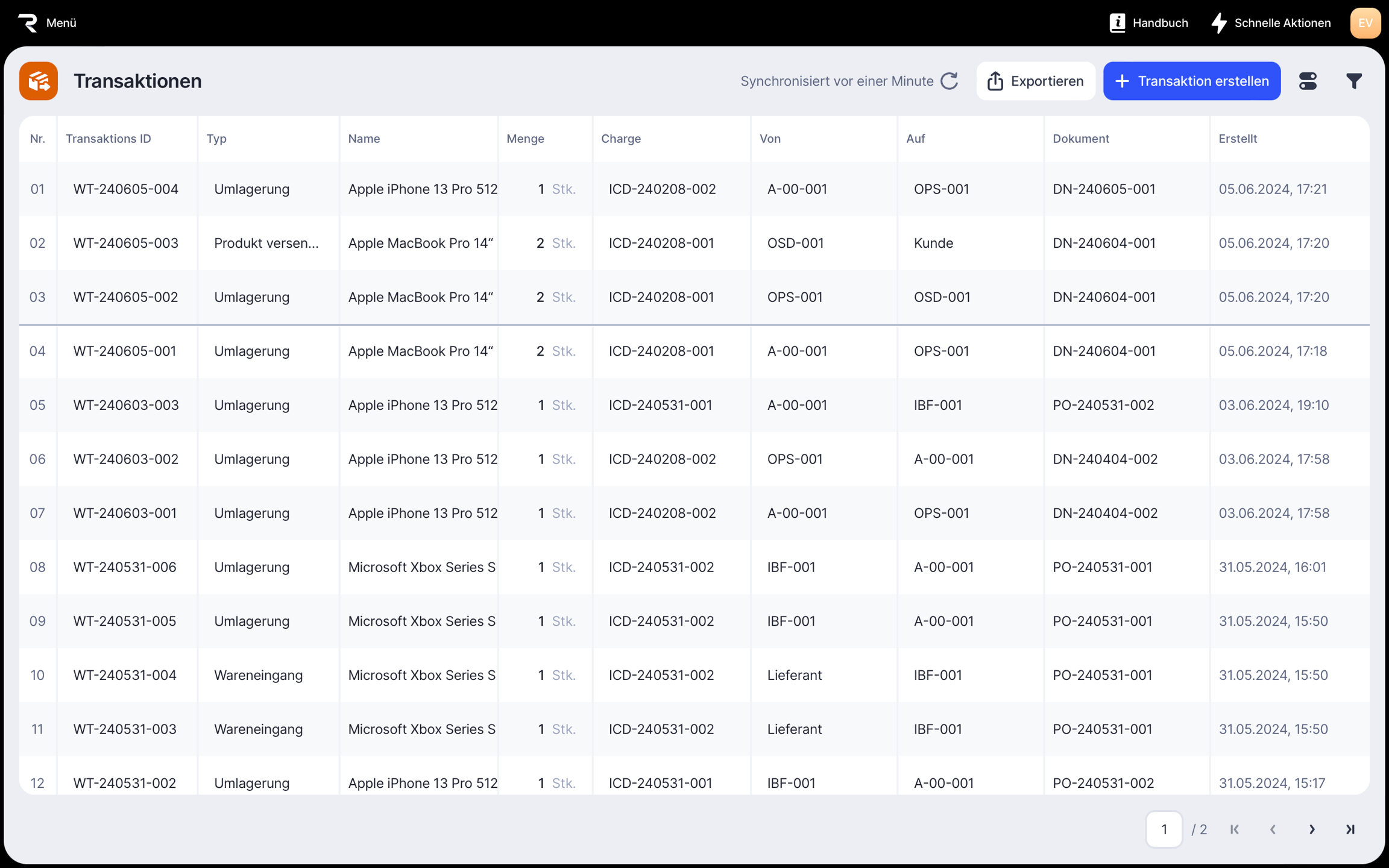 2. Klick Transaktion erstellen ![]()
