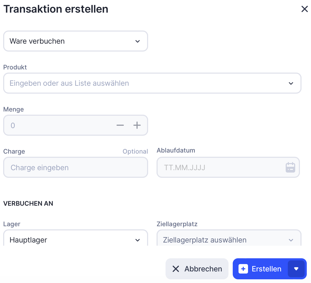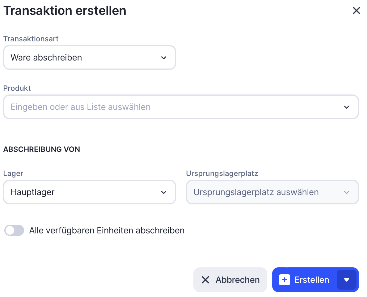 Wenn du alle auf dem Lagerplatz vorhandenen Produkte abschreiben willst, aktiviere die Option Alle verfΓΌgbaren Einheiten abschreiben.