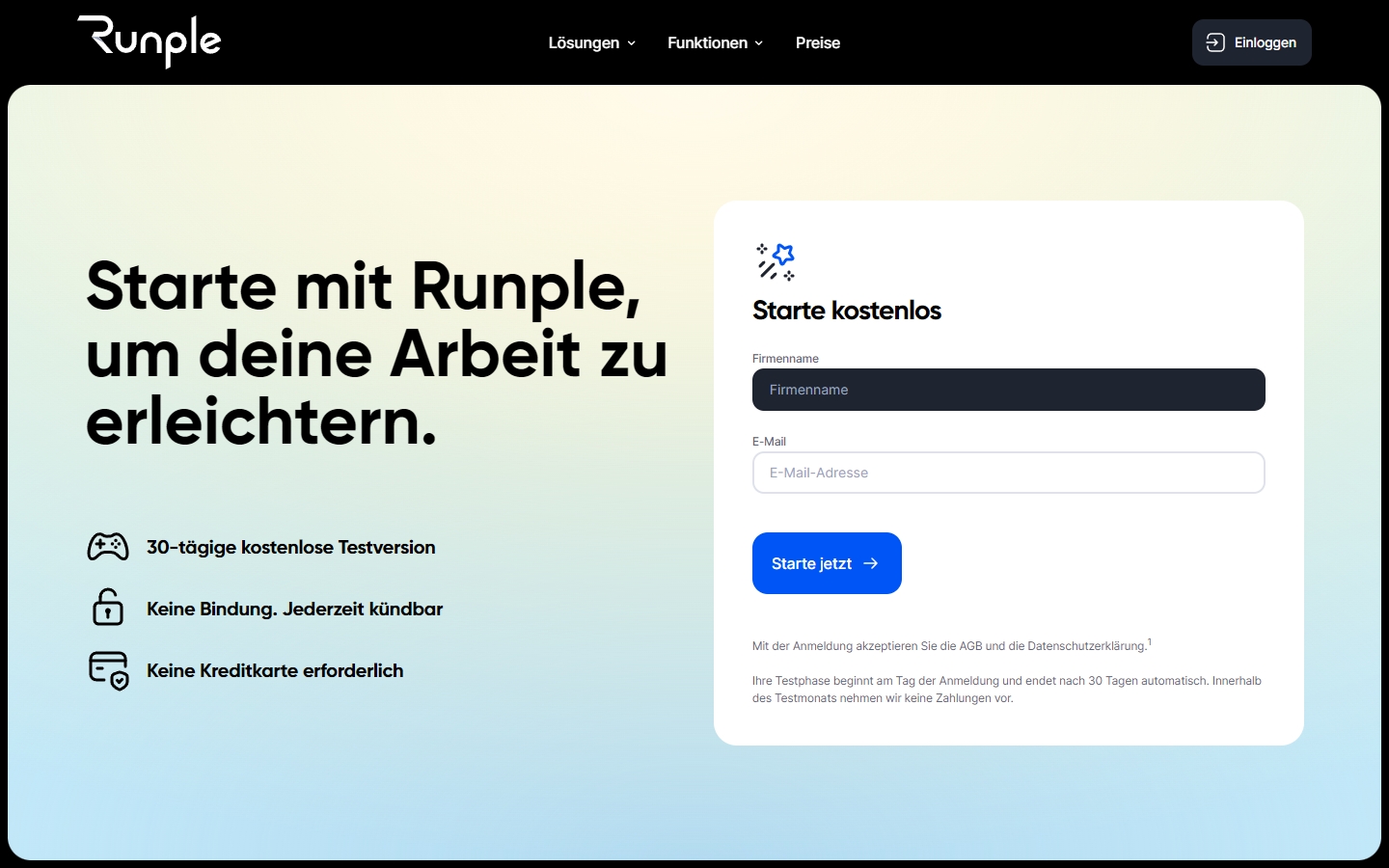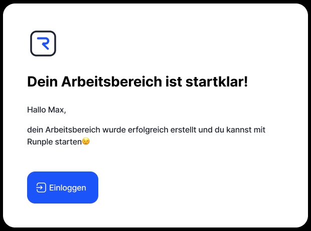 Sobald dein Arbeitsbereich fertig ist, erhältst du eine E-Mail und kannst mit Runple starten.